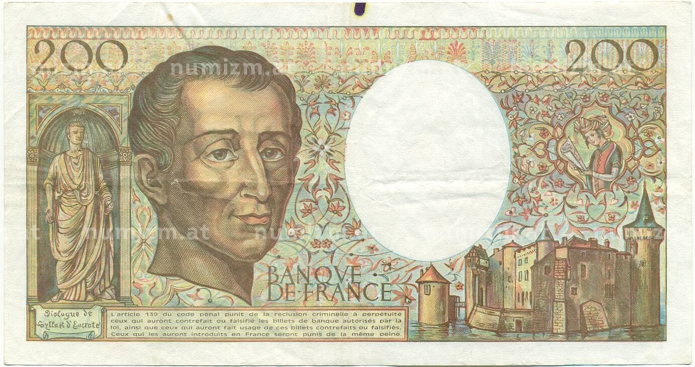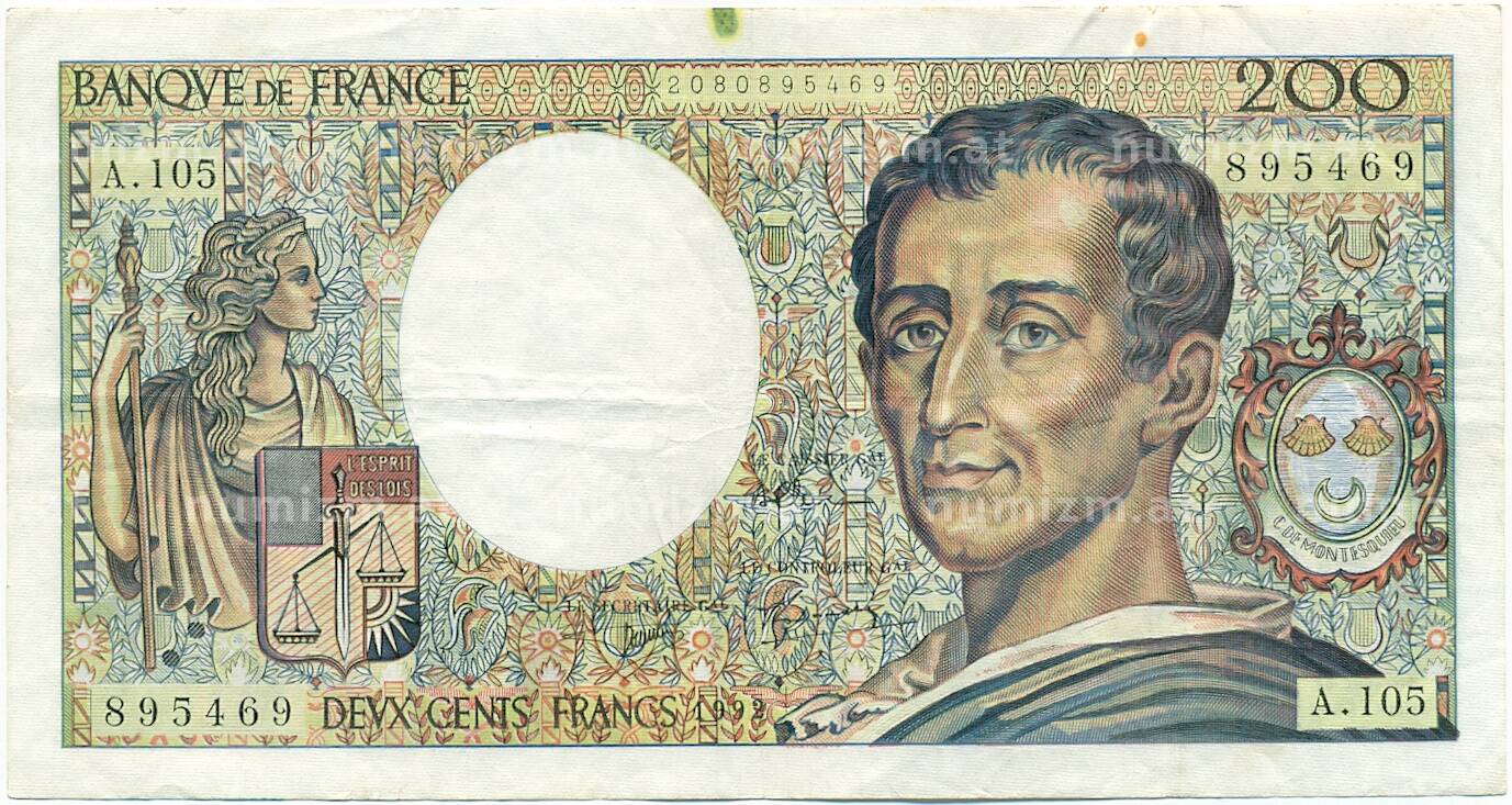 Банкнота 200 франков 1992 года Франция (Артикул: K10-9750): подробные характеристики, качественные фотографии в высоком разрешении, низкая цена.
