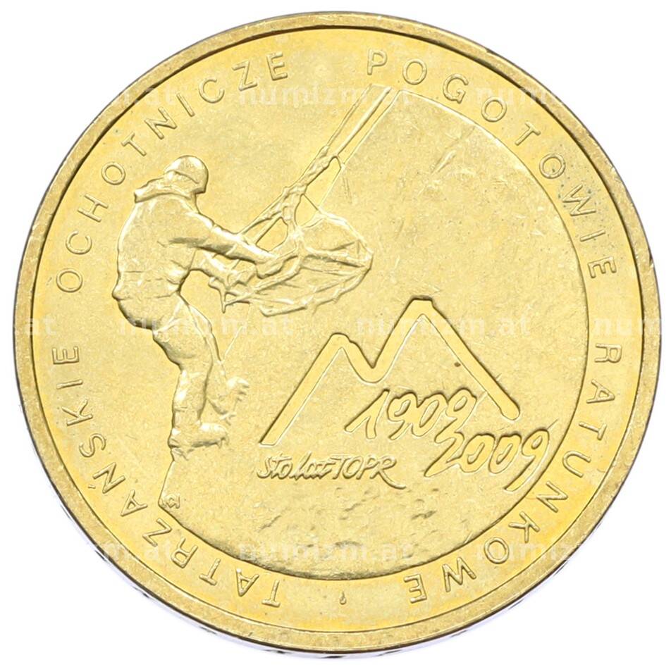 Монета 2 злотых 2009 года Польша «100 лет поисково-спасательной службы в Татрах» (Артикул: K10-9905): подробные характеристики, качественные фотографии в высоком разрешении, низкая цена.