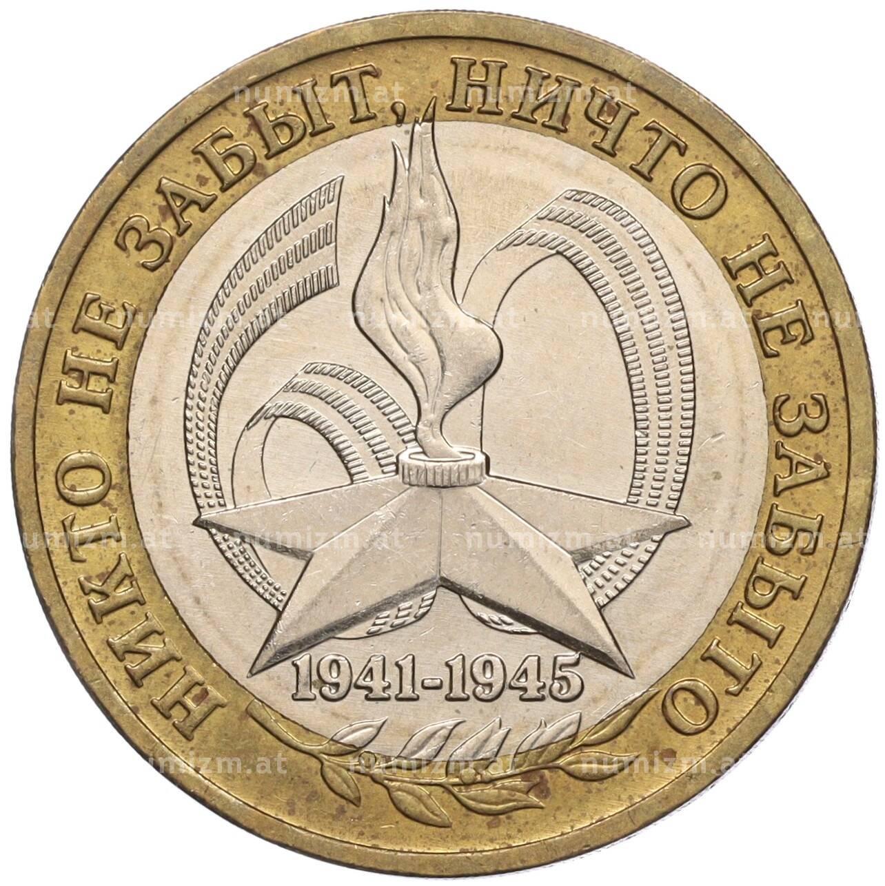 Интернет магазин «Нумизмат» предлагает приобрести 10 рублей 2005 года ММД «60 лет Победы».