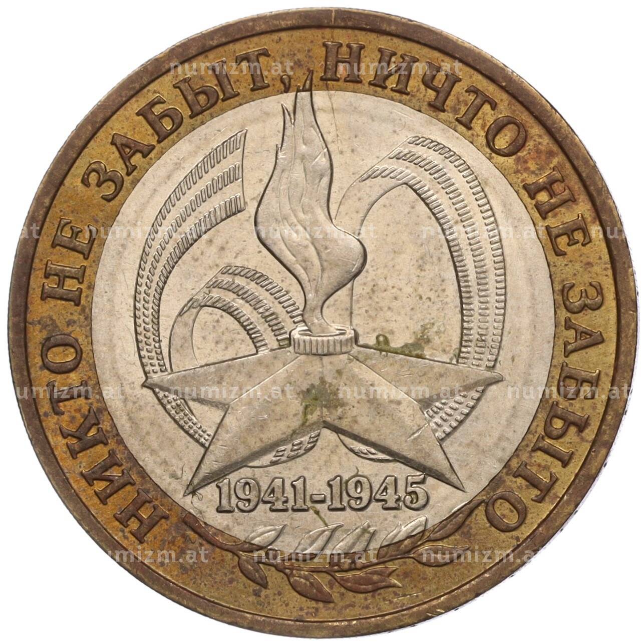 Интернет магазин «Нумизмат» предлагает приобрести 10 рублей 2005 года ММД «60 лет Победы».