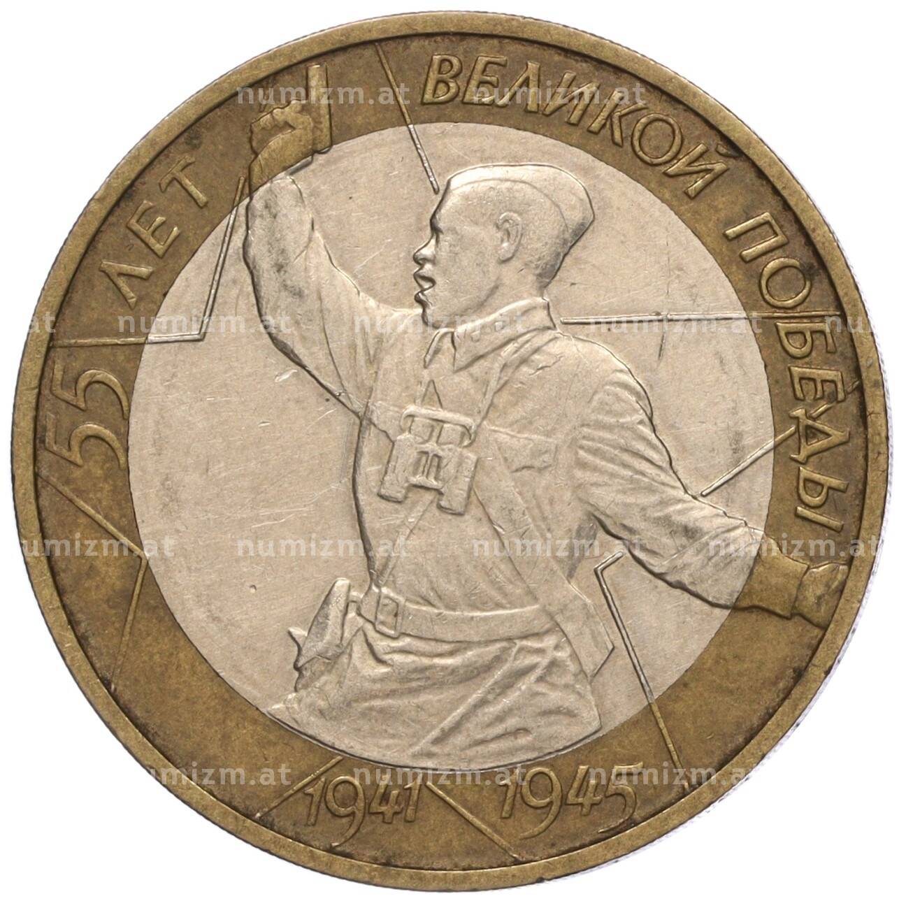 Купить 10 рублей 2000 года ММД «55 лет Великой Победы» по привлекательной цене можно в нашем интернет-магазине — Вам достаточно оформить заказ на сайте. Все монеты, представленные в каталоге, находятся в наличии на нашем складе.
