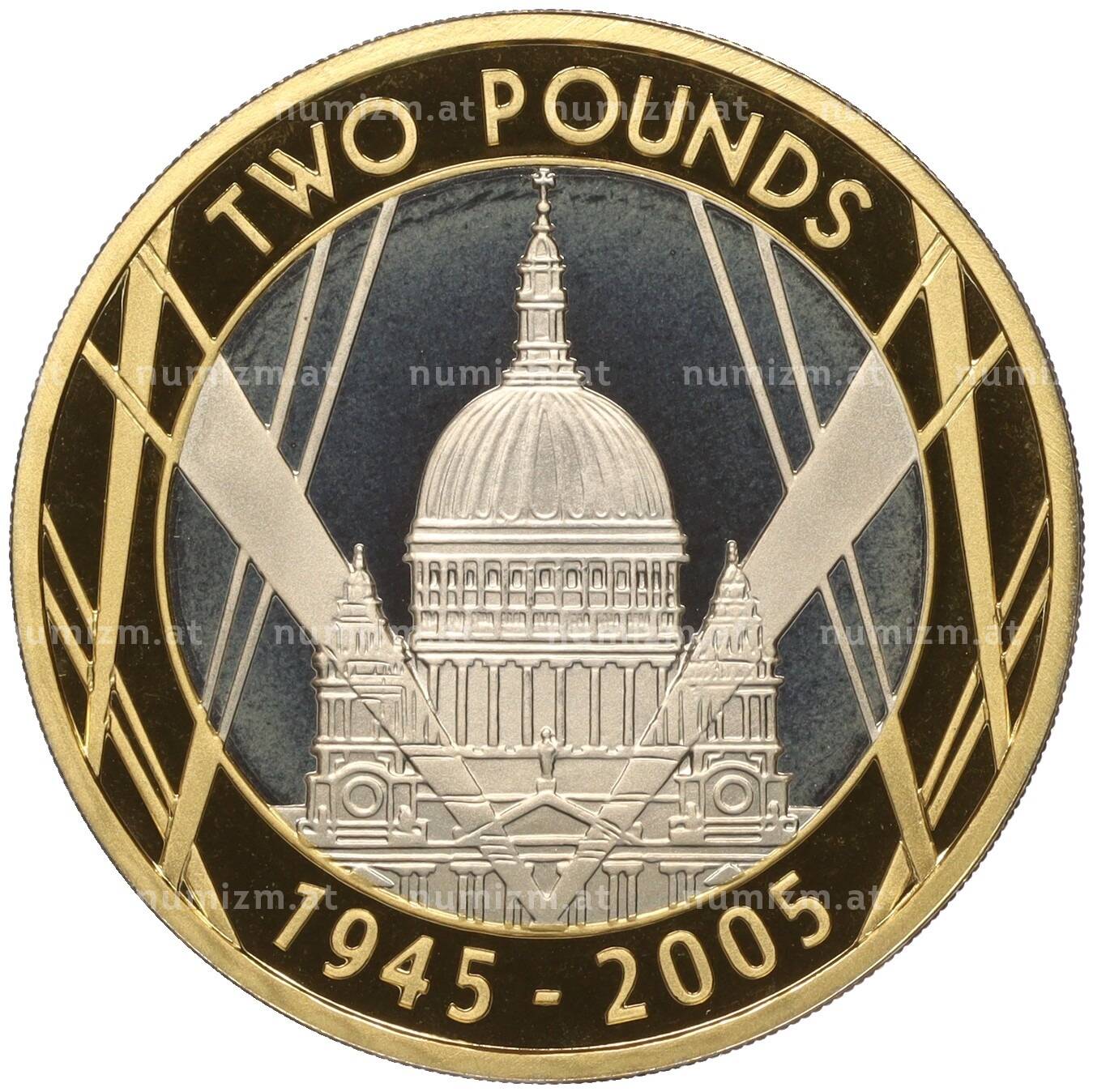 Купить 2 фунта 2005 года Великобритания «60 лет окончанию Второй мировой войны» по привлекательной цене можно в нашем интернет-магазине — Вам достаточно оформить заказ на сайте. Все монеты, представленные в каталоге, находятся в наличии на нашем складе.