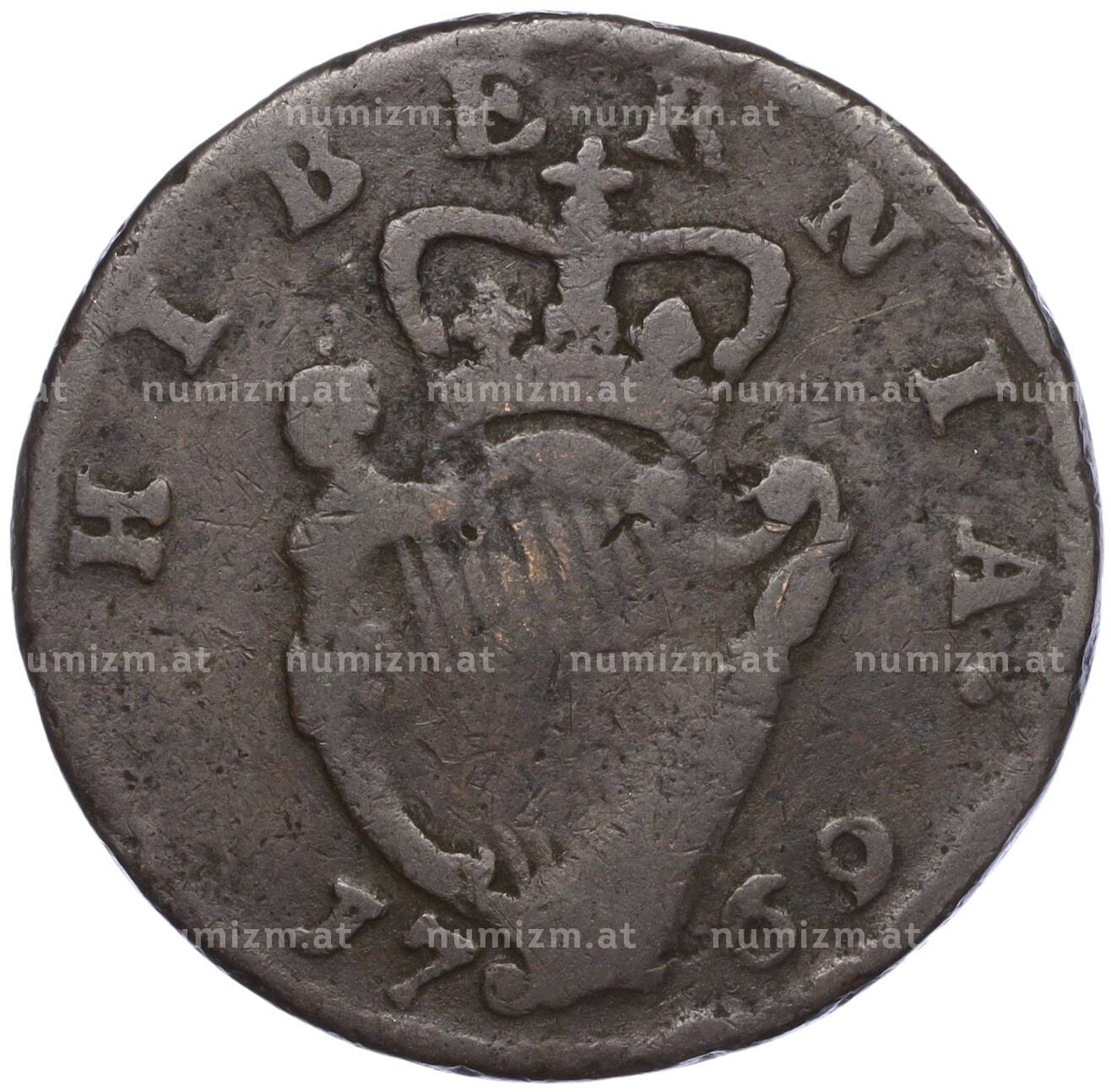 Купить 1/2 пенни 1769 года Ирландия по привлекательной цене можно в нашем интернет-магазине — Вам достаточно оформить заказ на сайте. Все монеты, представленные в каталоге, находятся в наличии на нашем складе.