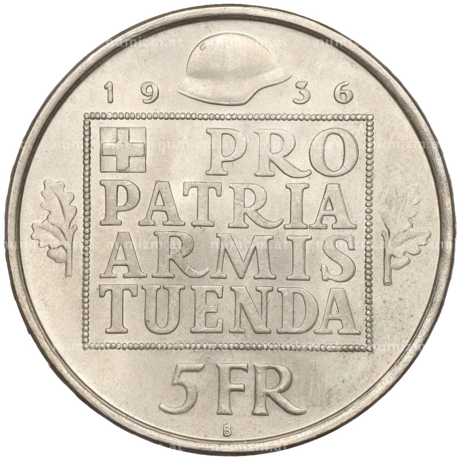 Купить 5 франков 1936 года Швейцария «Фонд вооружения Конфедерации» по привлекательной цене можно в нашем интернет-магазине — Вам достаточно оформить заказ на сайте. Все монеты, представленные в каталоге, находятся в наличии на нашем складе.