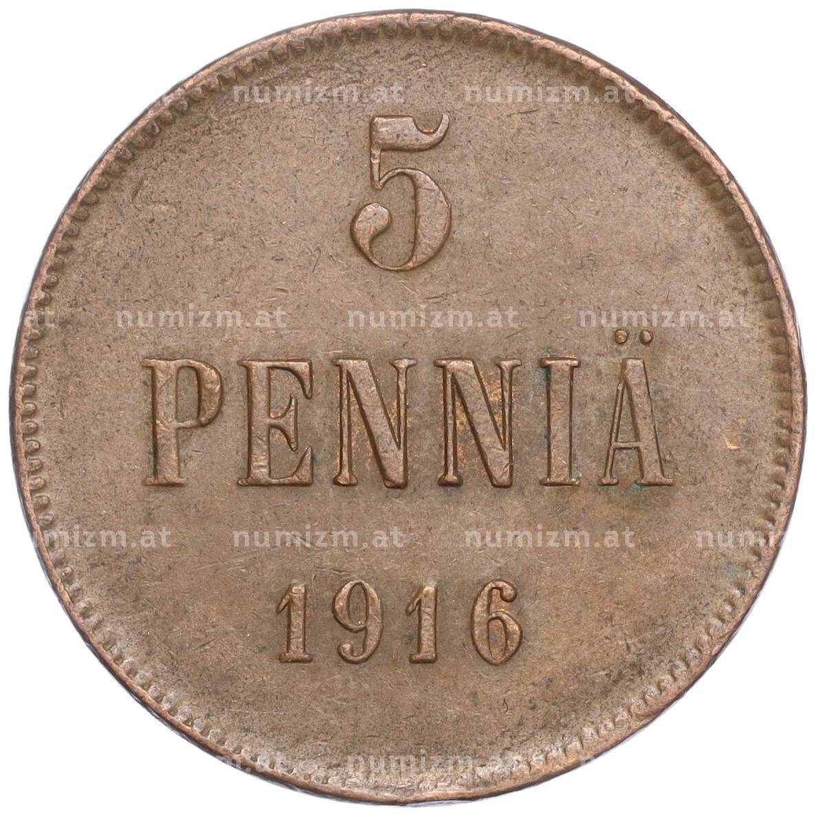 Монета 5 пенни 1916 года Русская Финляндия (Артикул: K11-104270): подробные характеристики, качественные фотографии в высоком разрешении, низкая цена.