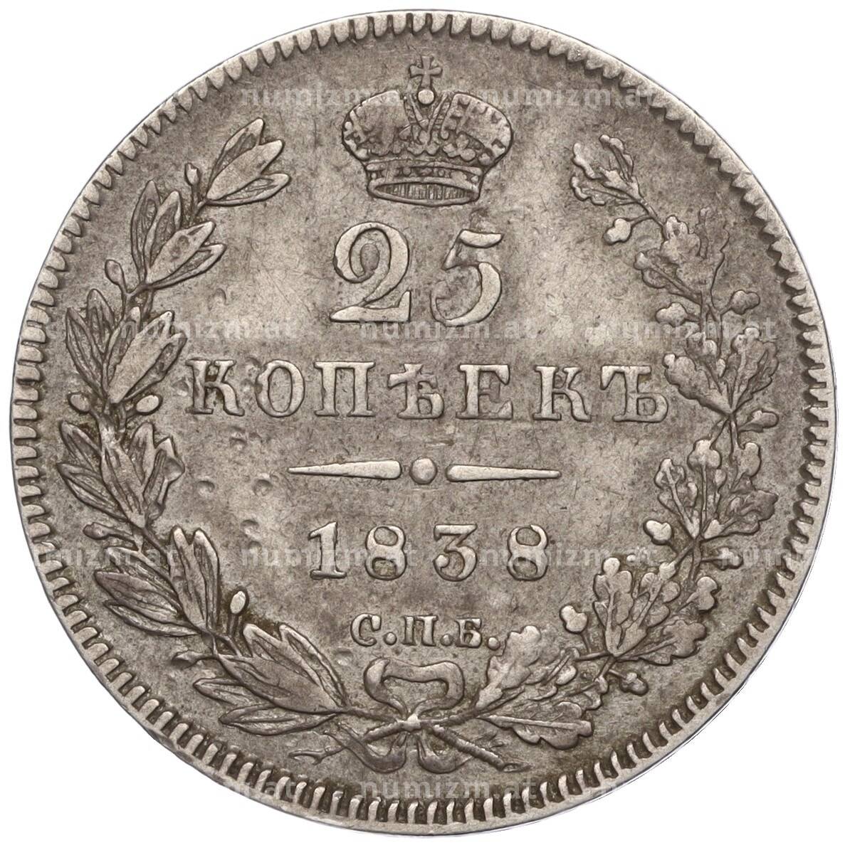 Купить 25 копеек 1838 года СПБ НГ по привлекательной цене можно в нашем интернет-магазине — Вам достаточно оформить заказ на сайте. Все монеты, представленные в каталоге, находятся в наличии на нашем складе.