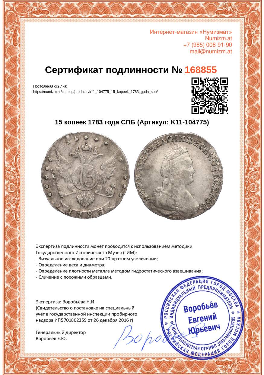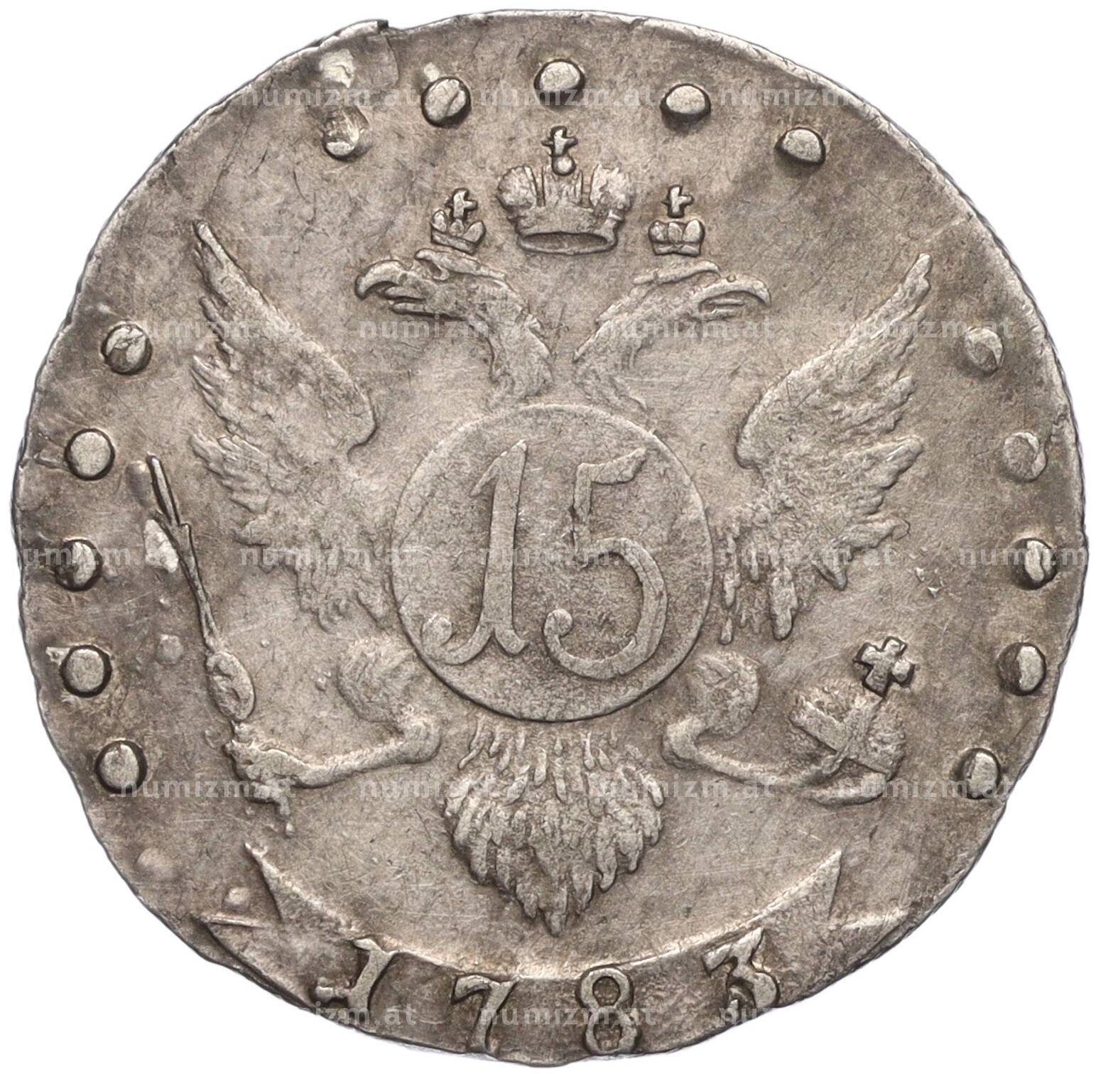 Купить 15 копеек 1783 года СПБ по привлекательной цене можно в нашем интернет-магазине — Вам достаточно оформить заказ на сайте. Все монеты, представленные в каталоге, находятся в наличии на нашем складе.