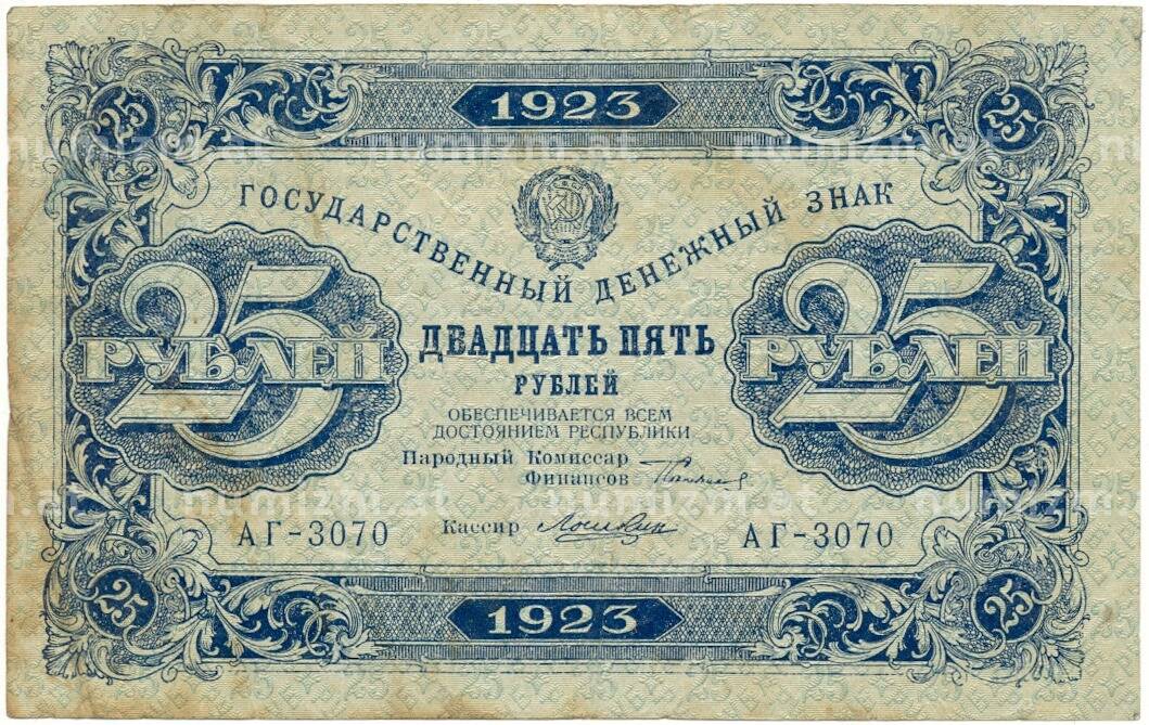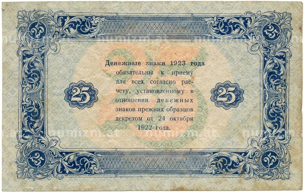 20.01.2025Интернет магазин «Нумизмат» предлагает приобрести 25 рублей 1923 года.