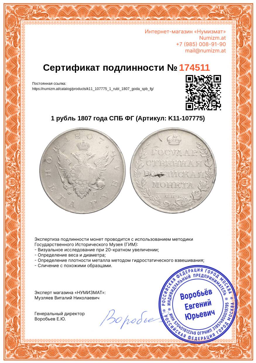 Купить 1 рубль 1807 года СПБ ФГ по привлекательной цене можно в нашем интернет-магазине — Вам достаточно оформить заказ на сайте. Все монеты, представленные в каталоге, находятся в наличии на нашем складе.