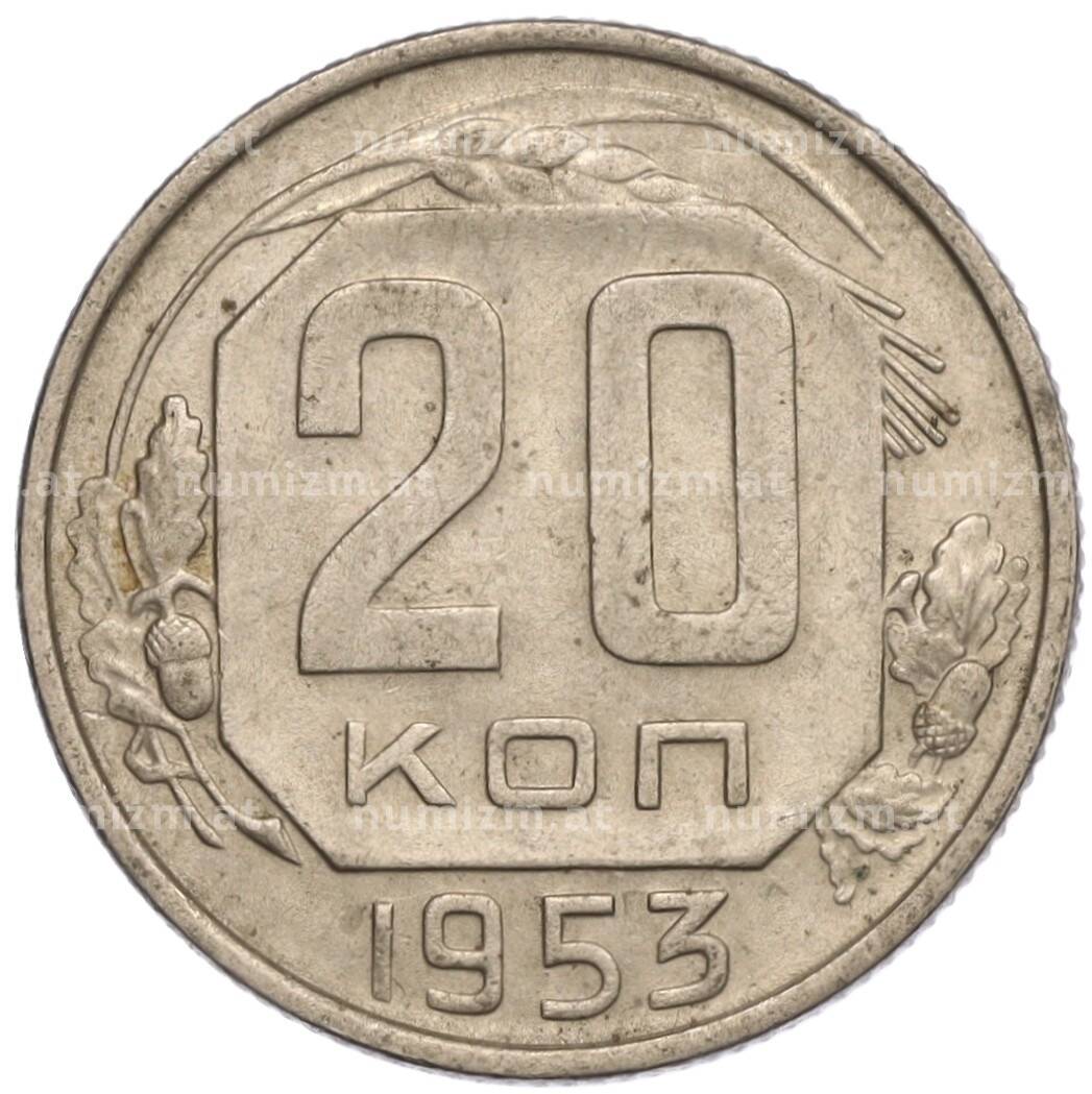 Монета 20 копеек 1953 года (Артикул: K11-109127): подробные характеристики, качественные фотографии в высоком разрешении, низкая цена.