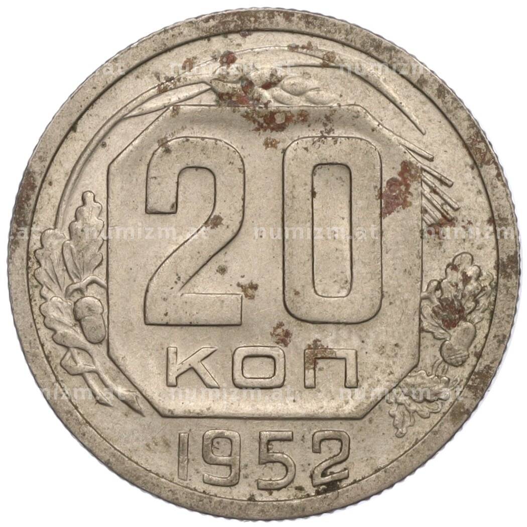 Монета 20 копеек 1952 года (Артикул: K11-109173): подробные характеристики, качественные фотографии в высоком разрешении, низкая цена.