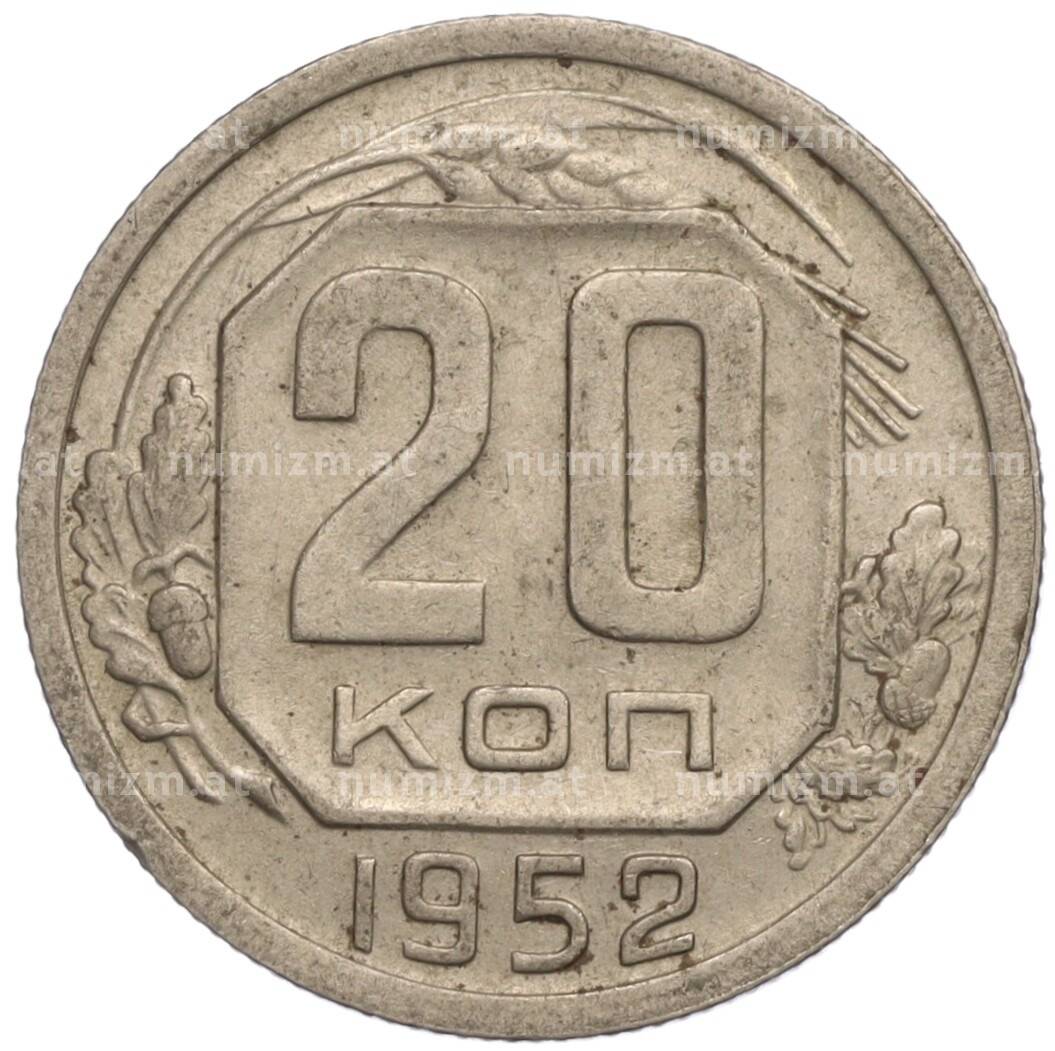 Монета 20 копеек 1952 года (Артикул: K11-109177): подробные характеристики, качественные фотографии в высоком разрешении, низкая цена.