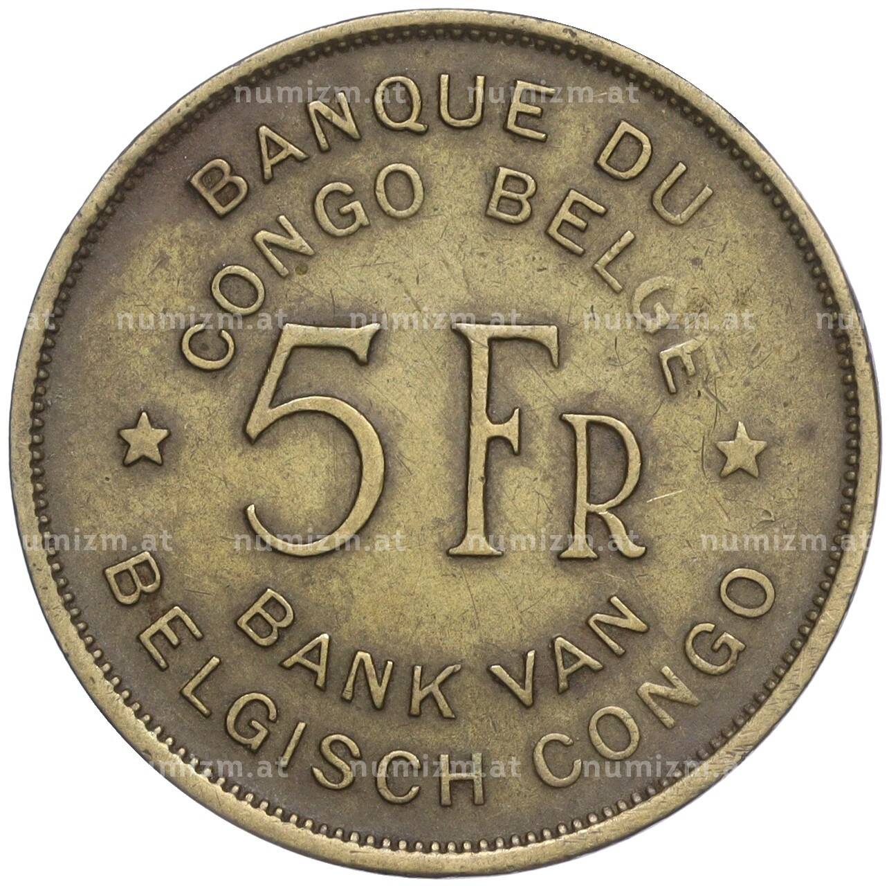 Монета 5 франков 1947 года Бельгийское Конго (Артикул: K11-109685): подробные характеристики, качественные фотографии в высоком разрешении, низкая цена.