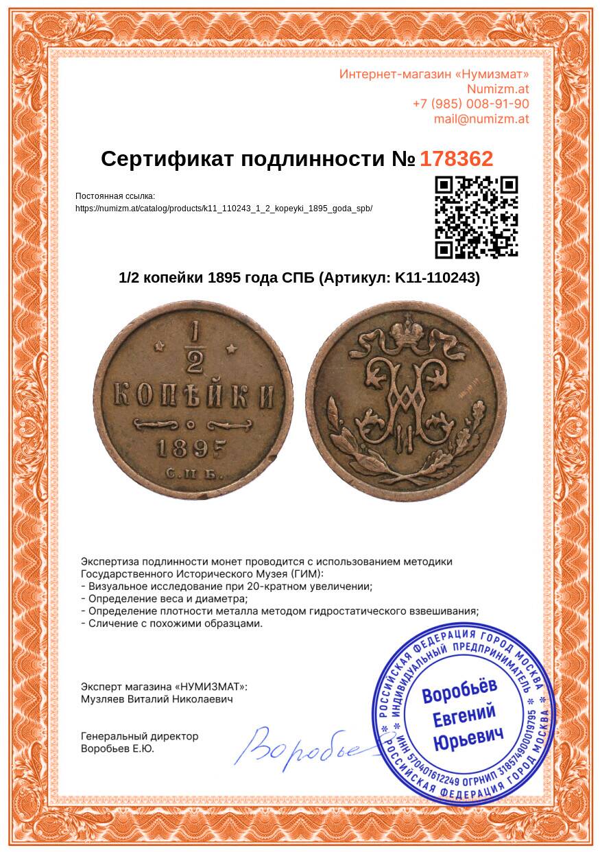 Купить 1/2 копейки 1895 года СПБ по привлекательной цене можно в нашем интернет-магазине — Вам достаточно оформить заказ на сайте. Все монеты, представленные в каталоге, находятся в наличии на нашем складе.