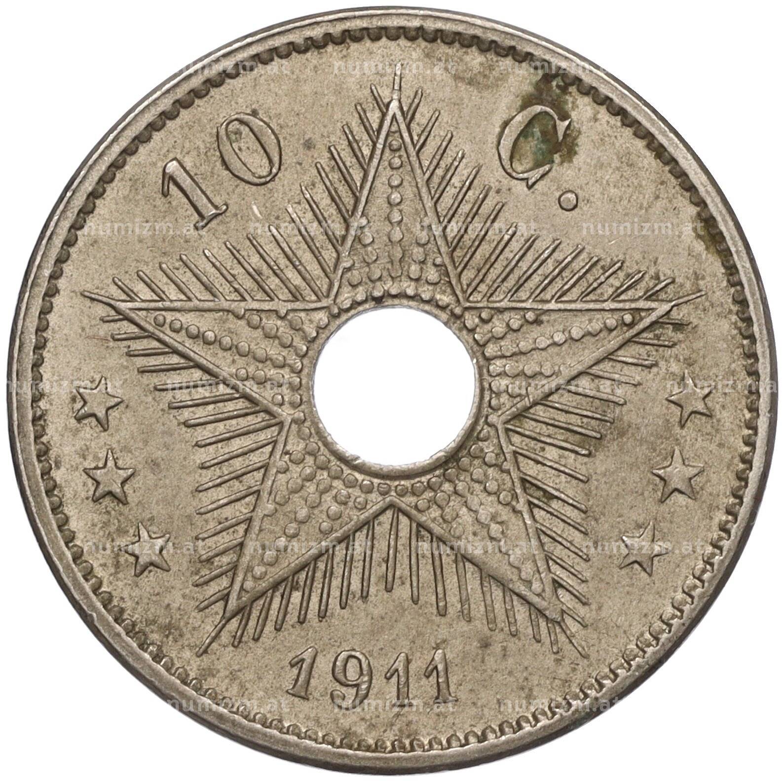 Монета 10 сантимов 1911 года Бельгийское Конго (Артикул: K11-111016): подробные характеристики, качественные фотографии в высоком разрешении, низкая цена.