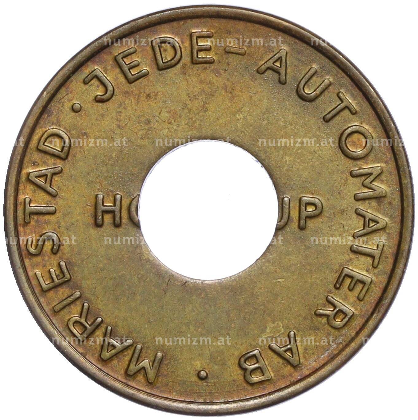 20.01.2025Интернет магазин «Нумизмат» предлагает приобрести Жетон торгового автомата компании «Jede-Matic Mariestad» Швеция.