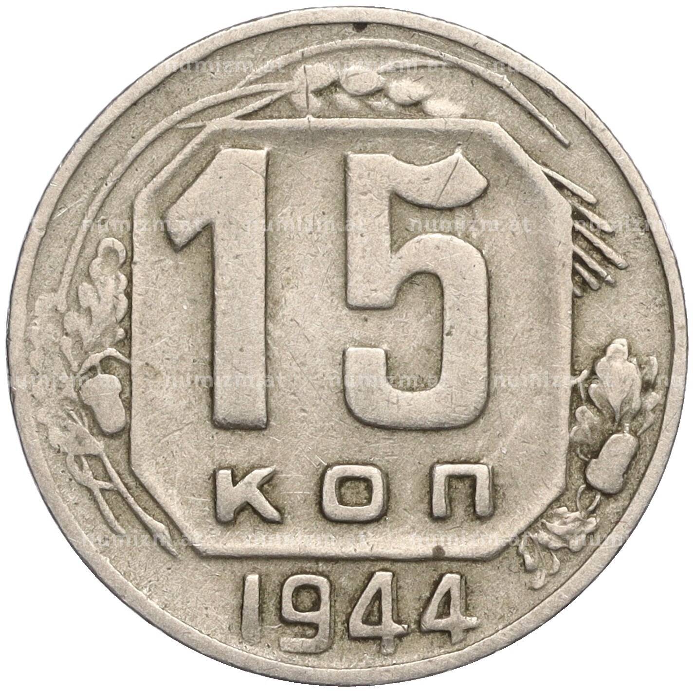 Купить 15 копеек 1944 года по привлекательной цене можно в нашем интернет-магазине — Вам достаточно оформить заказ на сайте. Все монеты, представленные в каталоге, находятся в наличии на нашем складе.