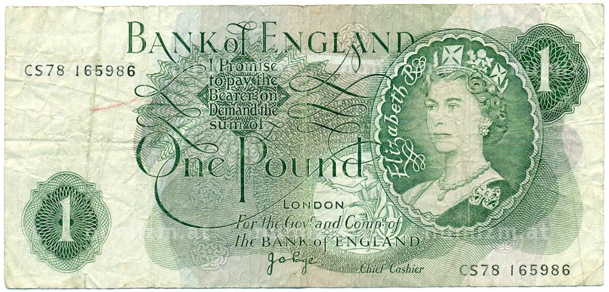 Банкнота 1 фунт 1970 года Великобритания (Банк Англии) (Артикул: K11-112719): подробные характеристики, качественные фотографии в высоком разрешении, низкая цена.