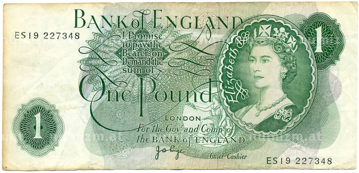 Банкнота 1 фунт 1970 года Великобритания (Банк Англии) (Артикул: K11-112737): подробные характеристики, качественные фотографии в высоком разрешении, низкая цена.