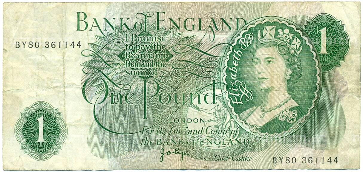 Банкнота 1 фунт 1970 года Великобритания (Банк Англии) (Артикул: K11-112738): подробные характеристики, качественные фотографии в высоком разрешении, низкая цена.