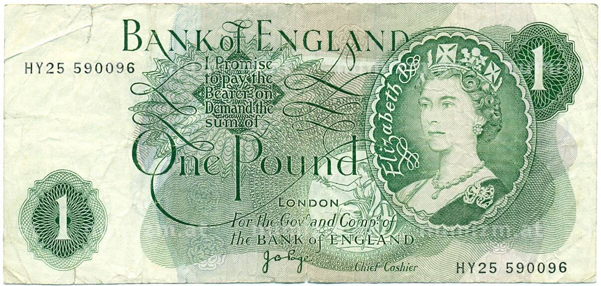 Банкнота 1 фунт 1970 года Великобритания (Банк Англии) (Артикул: K11-112740): подробные характеристики, качественные фотографии в высоком разрешении, низкая цена.