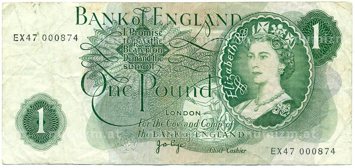 Банкнота 1 фунт 1970 года Великобритания (Банк Англии) (Артикул: K11-112741): подробные характеристики, качественные фотографии в высоком разрешении, низкая цена.