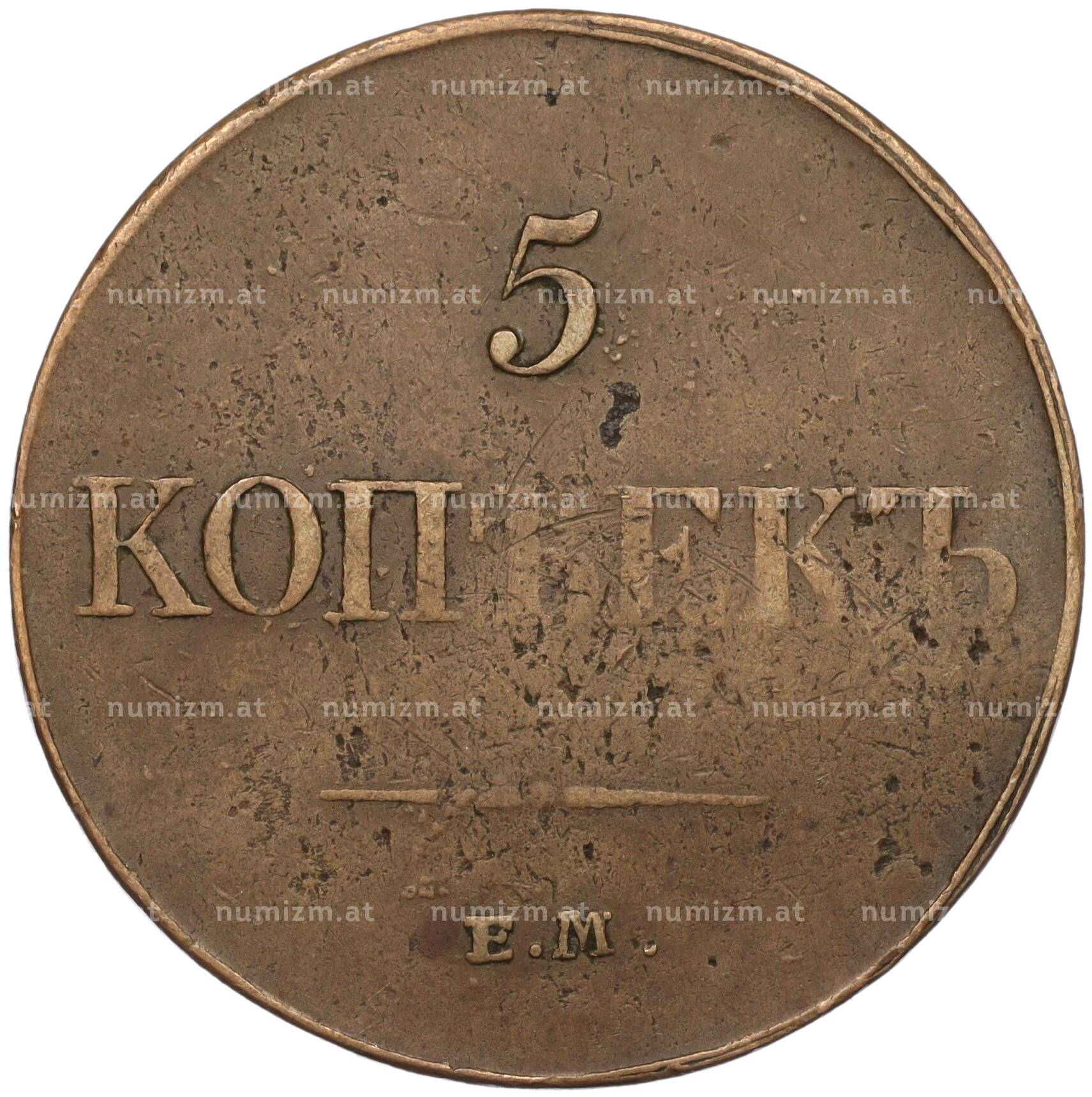 20.01.2025Интернет магазин «Нумизмат» предлагает приобрести 5 копеек 1833 года ЕМ ФХ.