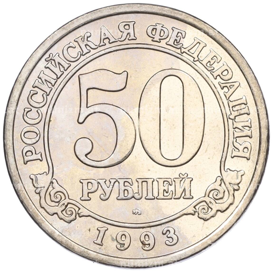 Интернет магазин «Нумизмат» предлагает приобрести 50 рублей 1993 года ММД Шпицберген (Арктикуголь).