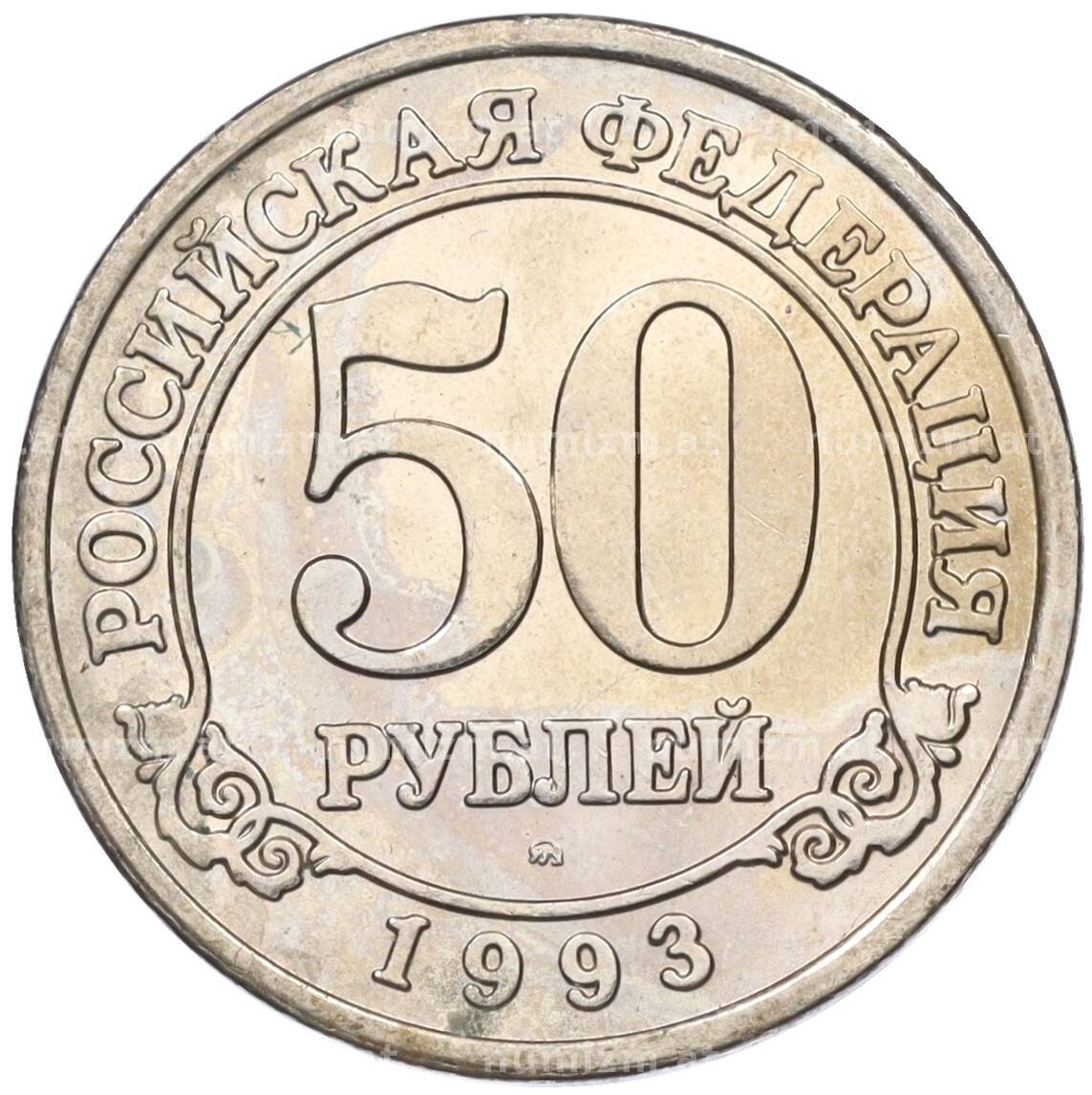 Интернет магазин «Нумизмат» предлагает приобрести 50 рублей 1993 года ММД Шпицберген (Арктикуголь).