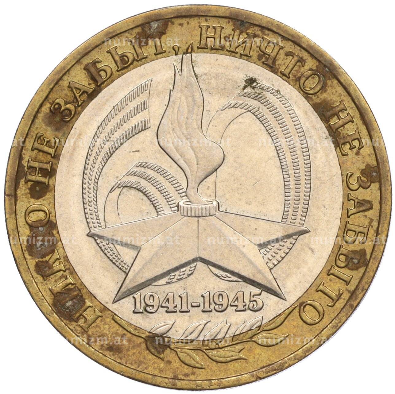 Интернет магазин «Нумизмат» предлагает приобрести 10 рублей 2005 года ММД «60 лет Победы».
