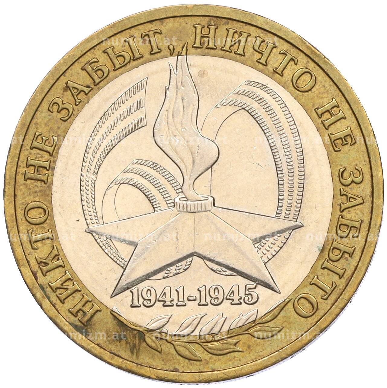 Интернет магазин «Нумизмат» предлагает приобрести 10 рублей 2005 года ММД «60 лет Победы».