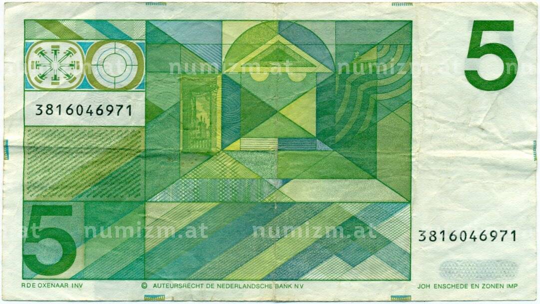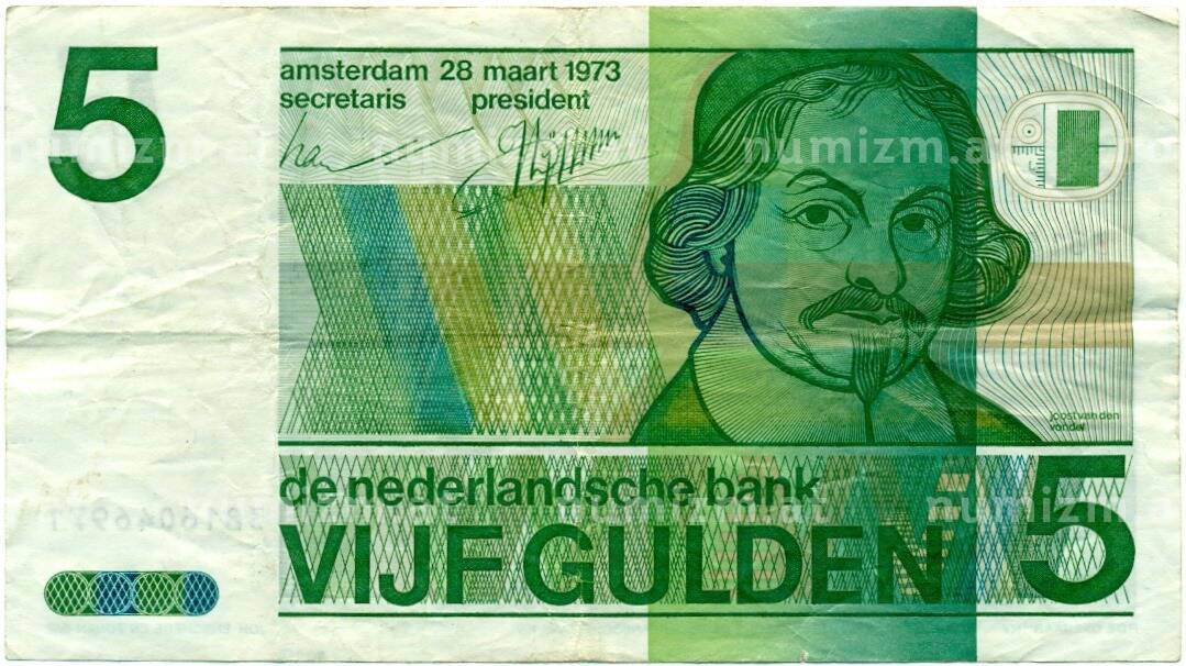Банкнота 5 гульденов 1973 года Нидерланды (Артикул: K11-117519): подробные характеристики, качественные фотографии в высоком разрешении, низкая цена.
