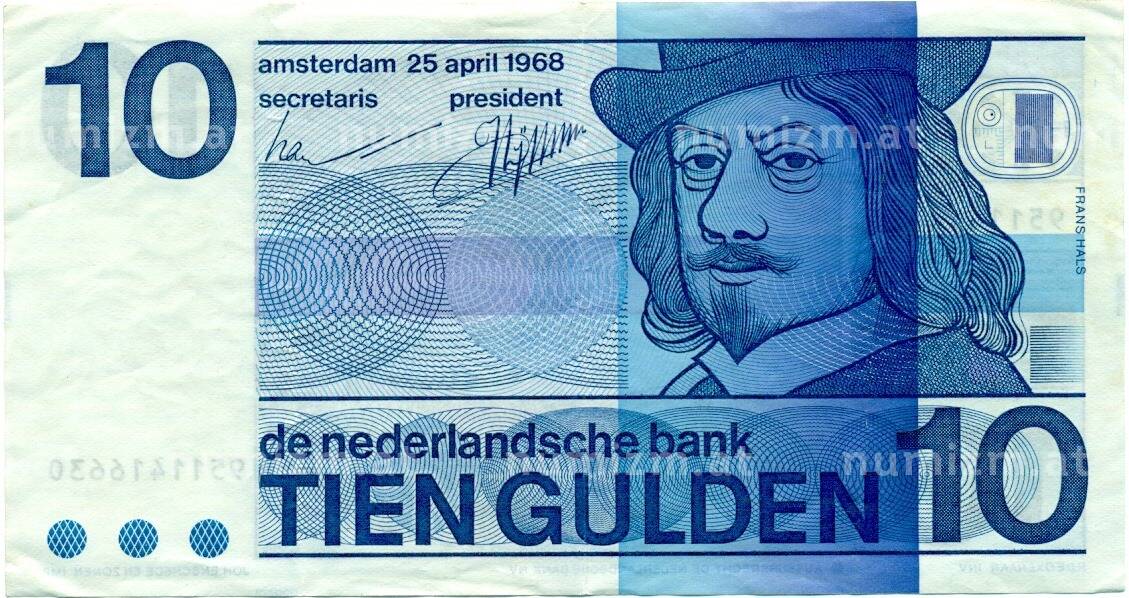 Банкнота 10 гульденов 1968 года Нидерланды (Артикул: K11-117546): подробные характеристики, качественные фотографии в высоком разрешении, низкая цена.