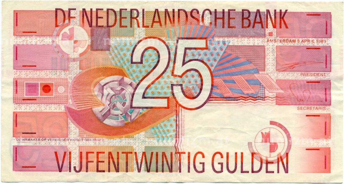 Банкнота 25 гульденов 1989 года Нидерланды (Артикул: K11-117561): подробные характеристики, качественные фотографии в высоком разрешении, низкая цена.