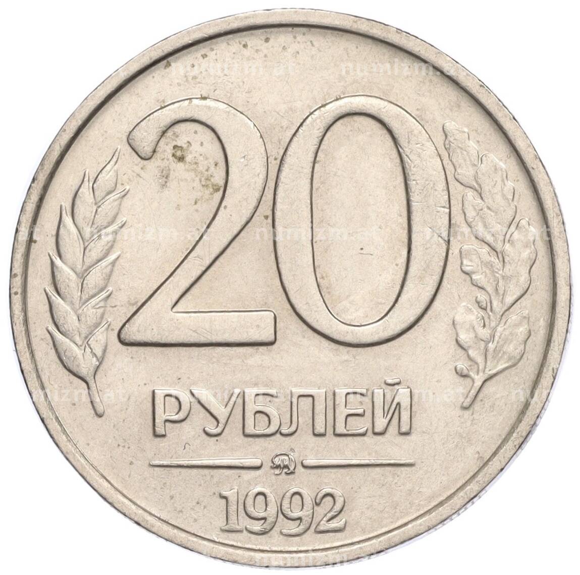 • Монета 20 рублей 1992 года ММД (Артикул: K11-117862) — Фото №1 Монета 20 рублей 1992 года ММД (Артикул: K11-117862) — Фото №2
