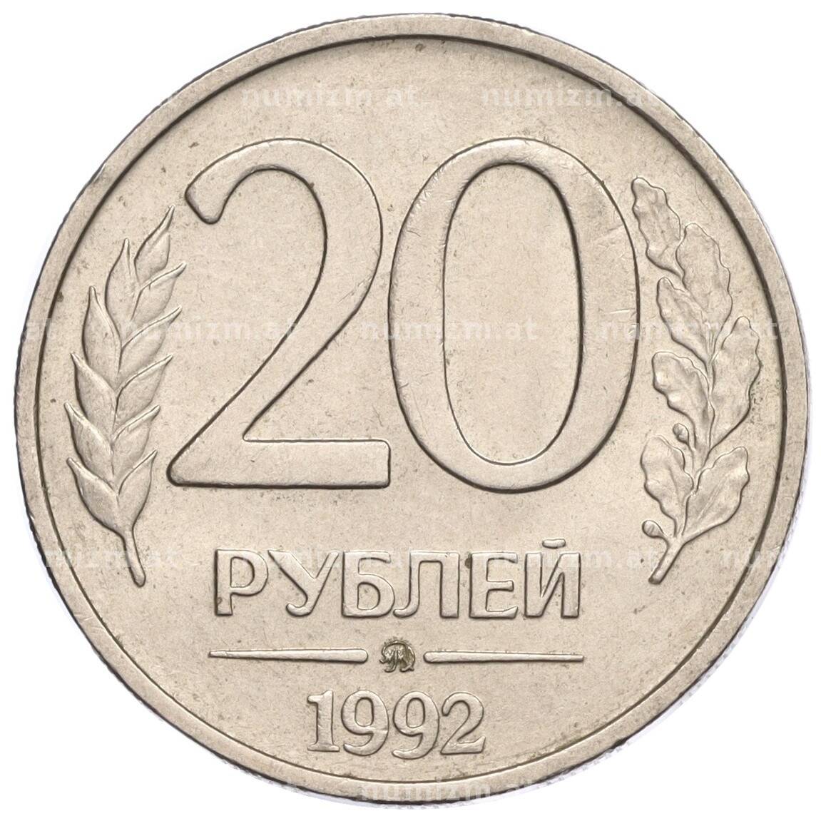 • Монета 20 рублей 1992 года ММД (Артикул: K11-117878) — Фото №1 Монета 20 рублей 1992 года ММД (Артикул: K11-117878) — Фото №2