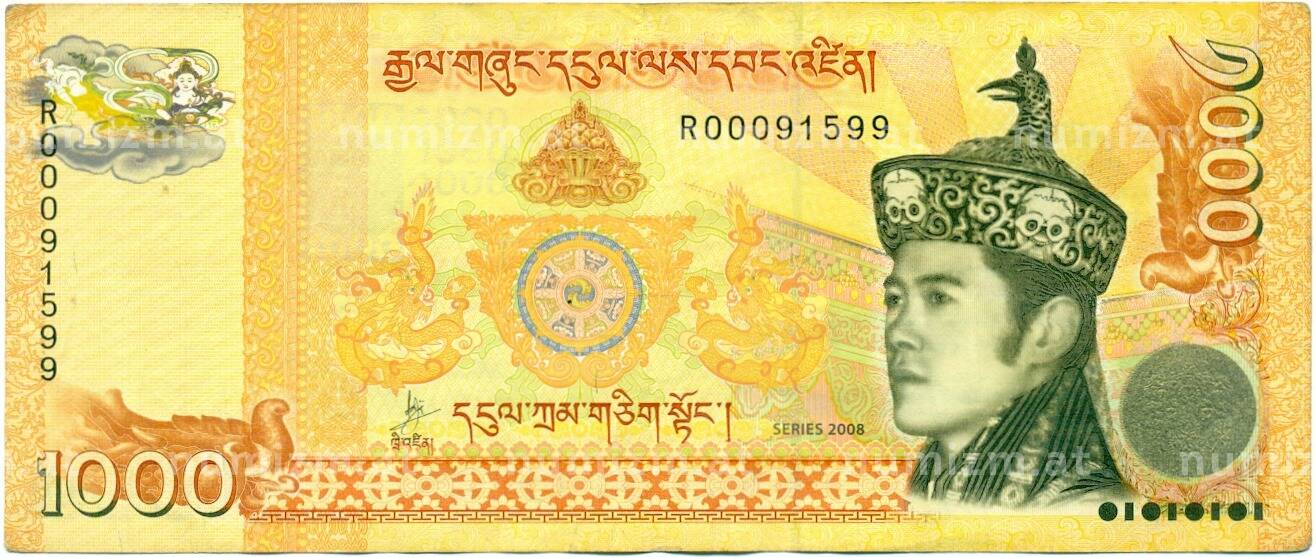 Банкнота 1000 нгултрум 2008 года Бутан (Артикул: K11-118422): подробные характеристики, качественные фотографии в высоком разрешении, низкая цена.