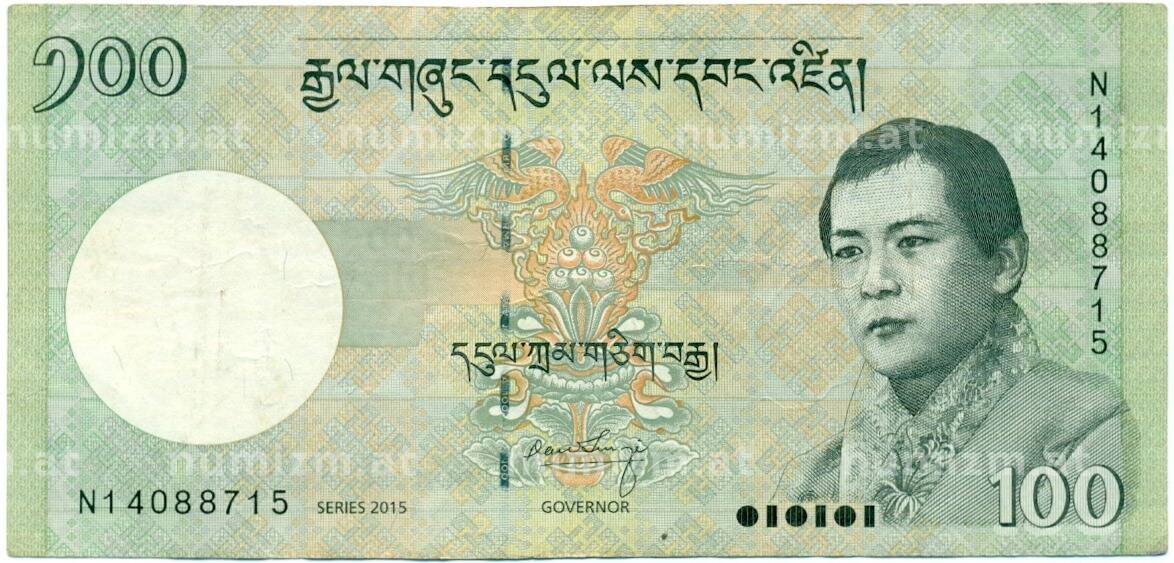 Банкнота 100 нгултрум 2015 года Бутан (Артикул: K11-118518): подробные характеристики, качественные фотографии в высоком разрешении, низкая цена.