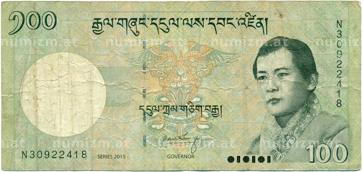 Банкнота 100 нгултрум 2015 года Бутан [Артикул: K11-118564]
