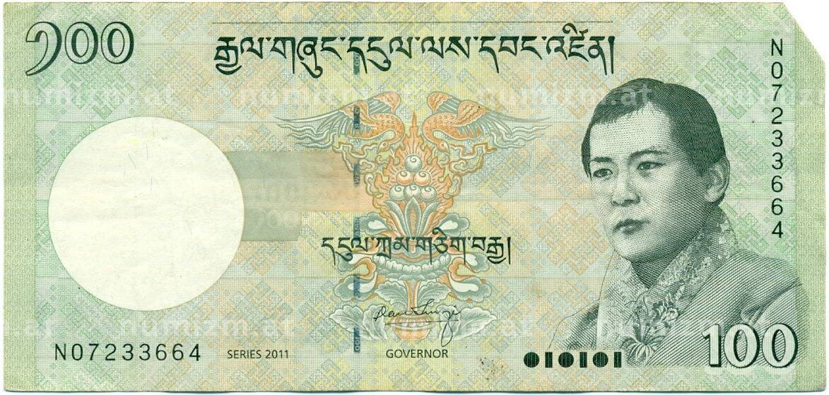 Банкнота 100 нгултрум 2011 года Бутан [Артикул: K11-118589]