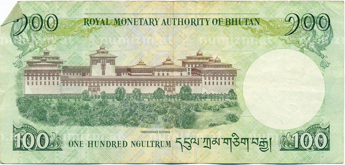 Банкнота 100 нгултрум 2011 года Бутан (Артикул: K11-118589): подробные характеристики, качественные фотографии в высоком разрешении, низкая цена.