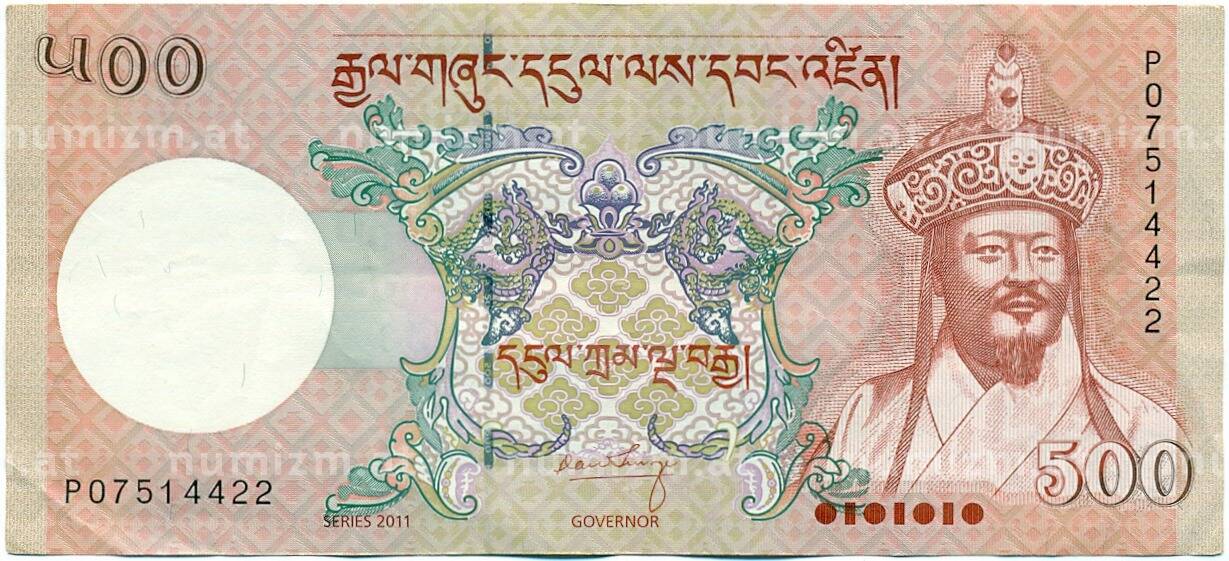 Банкнота 500 нгултрум 2011 года Бутан (Артикул: K11-118705): подробные характеристики, качественные фотографии в высоком разрешении, низкая цена.