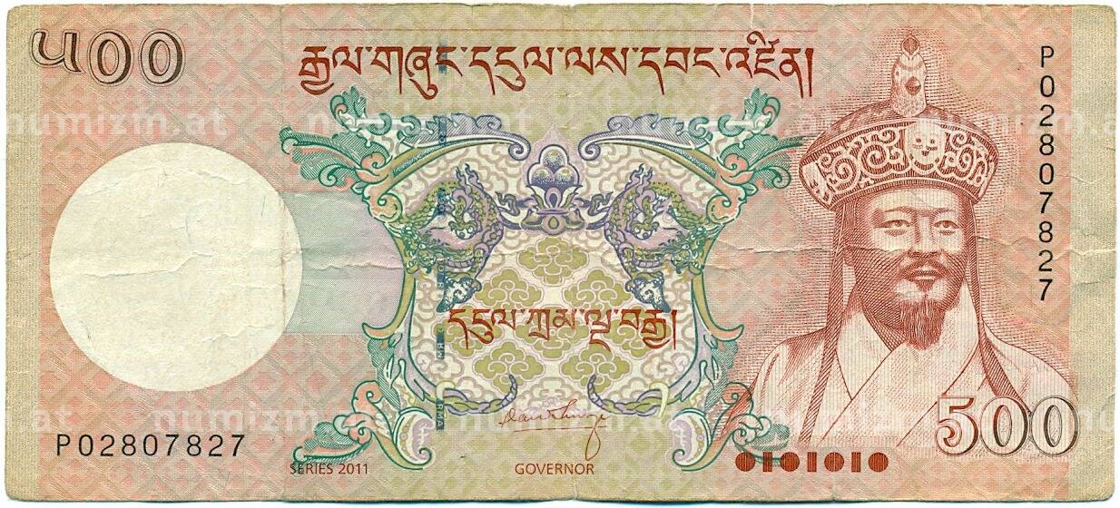 Банкнота 500 нгултрум 2011 года Бутан (Артикул: K11-118720): подробные характеристики, качественные фотографии в высоком разрешении, низкая цена.