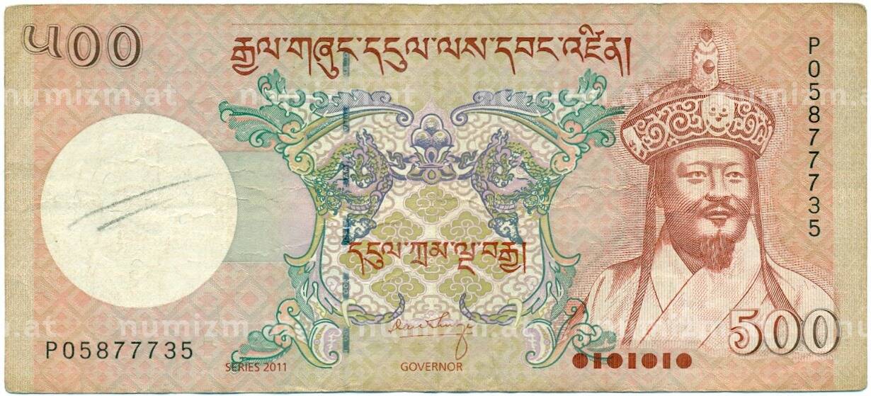 Банкнота 500 нгултрум 2011 года Бутан (Артикул: K11-118721): подробные характеристики, качественные фотографии в высоком разрешении, низкая цена.