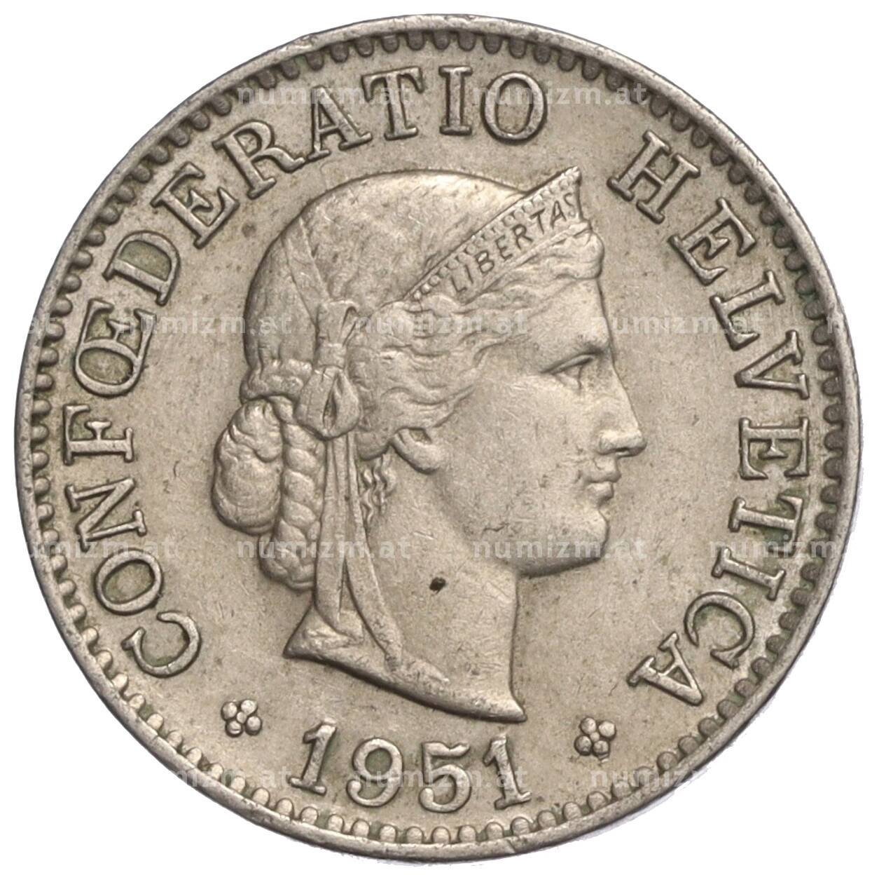 Интернет магазин «Нумизмат» предлагает приобрести 5 раппенов 1951 года Швейцария.