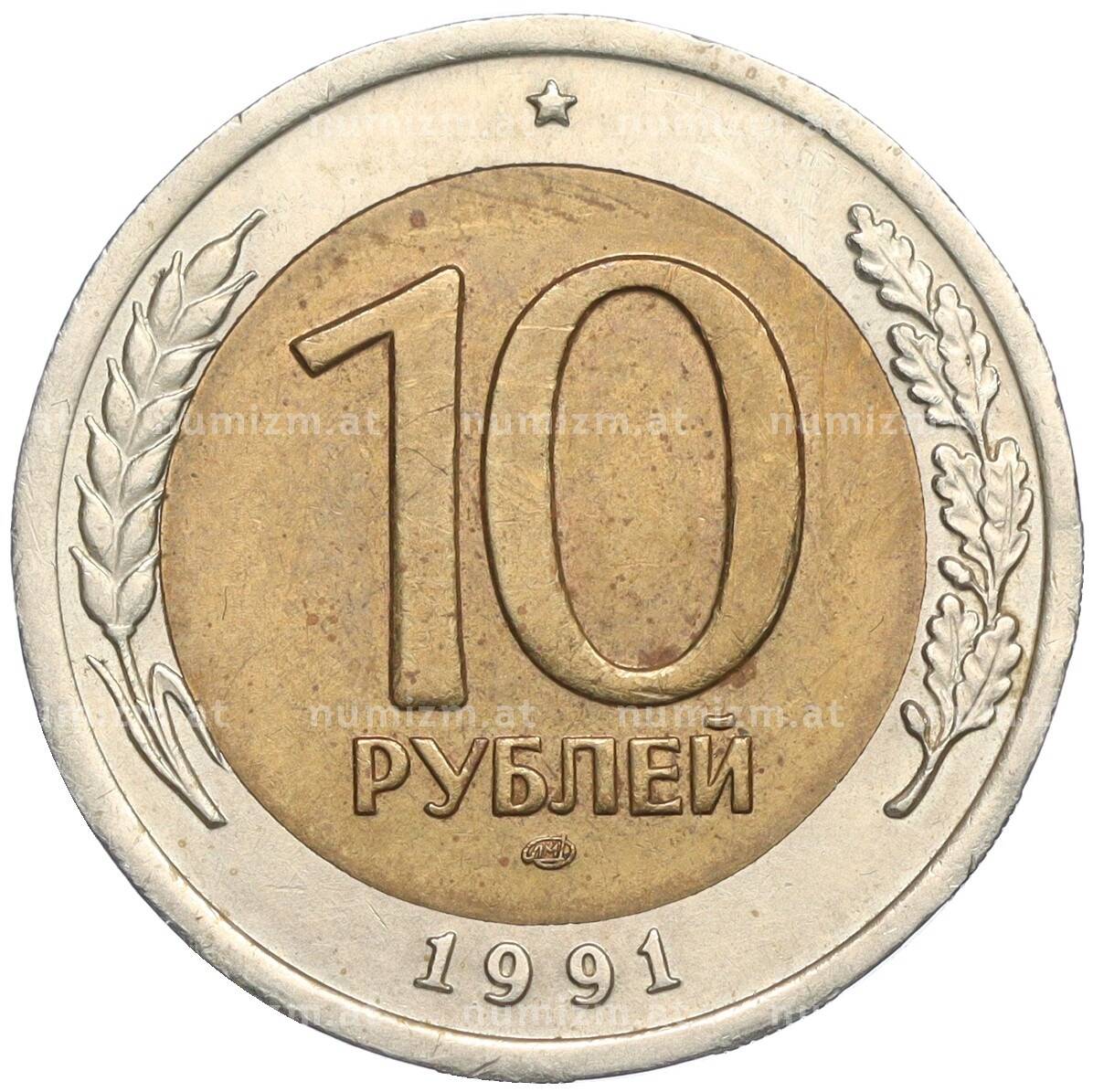 Интернет магазин «Нумизмат» предлагает приобрести 10 рублей 1991 года ЛМД (ГКЧП).