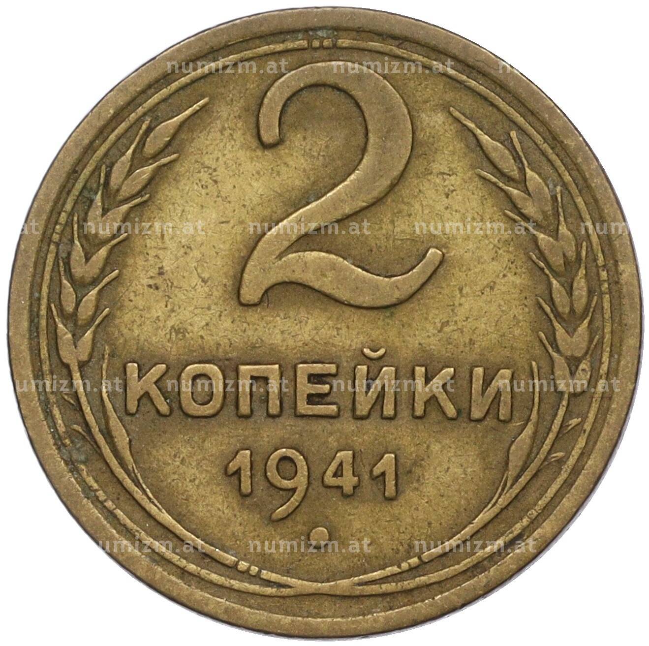 Монета 2 копейки 1941 года (Артикул: K11-119927): подробные характеристики, качественные фотографии в высоком разрешении, низкая цена.