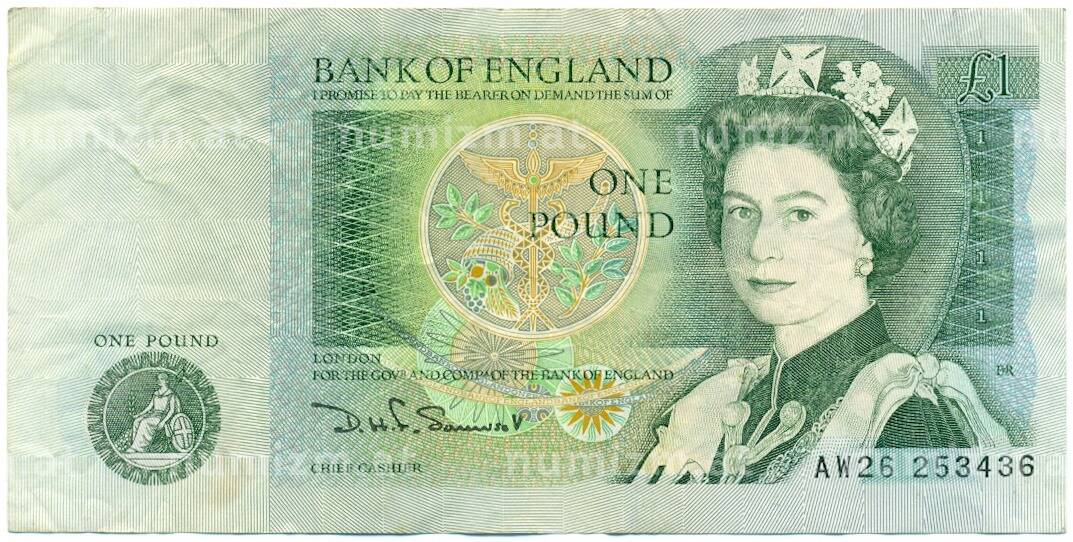 • Банкнота 1 фунт 1982 года Великобритания (Банк Англии) (Артикул: K11-121927) — Фото №1 Банкнота 1 фунт 1982 года Великобритания (Банк Англии) (Артикул: K11-121927) — Фото №2
