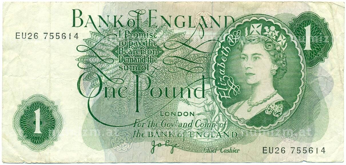 Банкнота 1 фунт 1970 года Великобритания (Банк Англии) (Артикул: K11-122045): подробные характеристики, качественные фотографии в высоком разрешении, низкая цена.