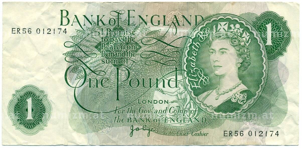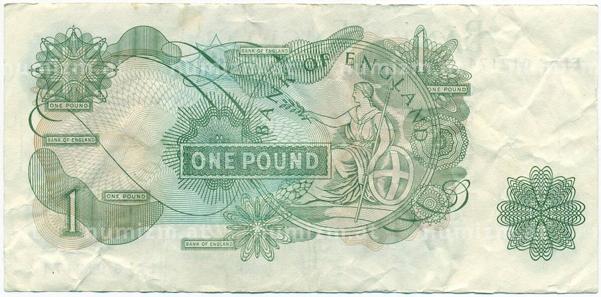 Банкнота 1 фунт 1970 года Великобритания (Банк Англии) (Артикул: K11-122048): подробные характеристики, качественные фотографии в высоком разрешении, низкая цена.